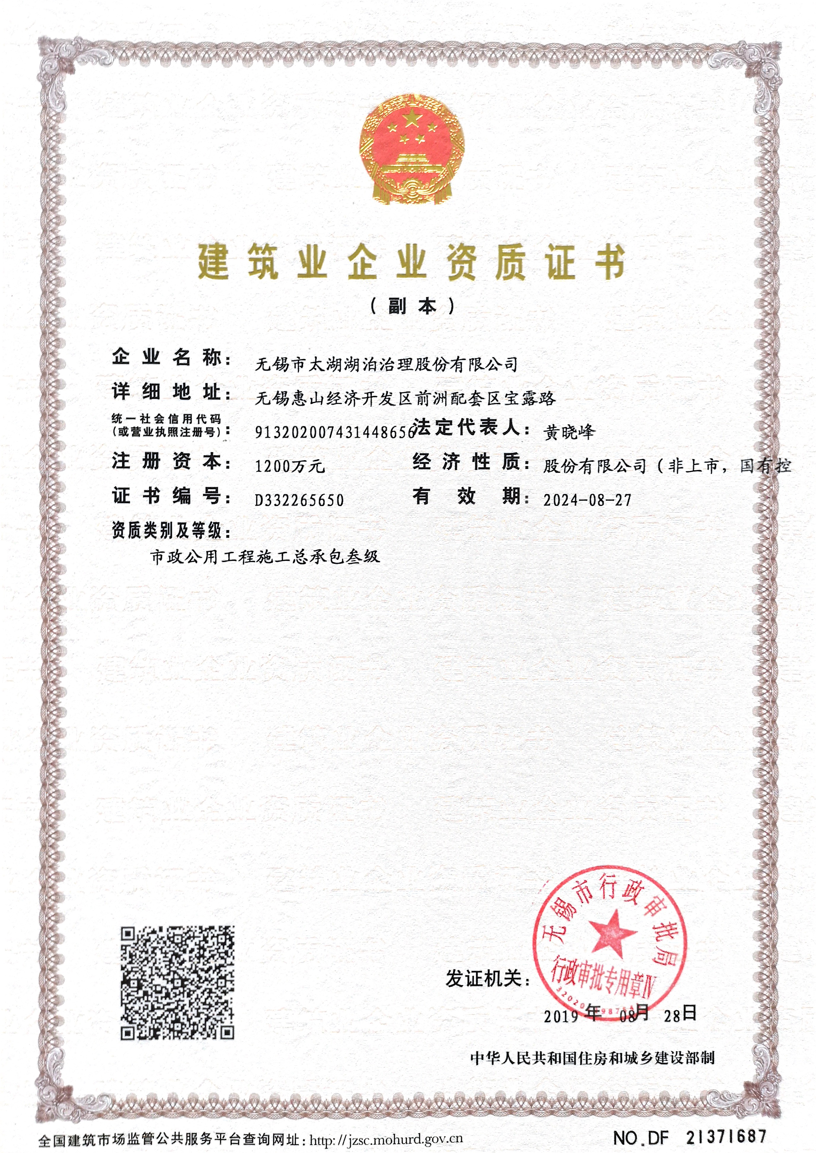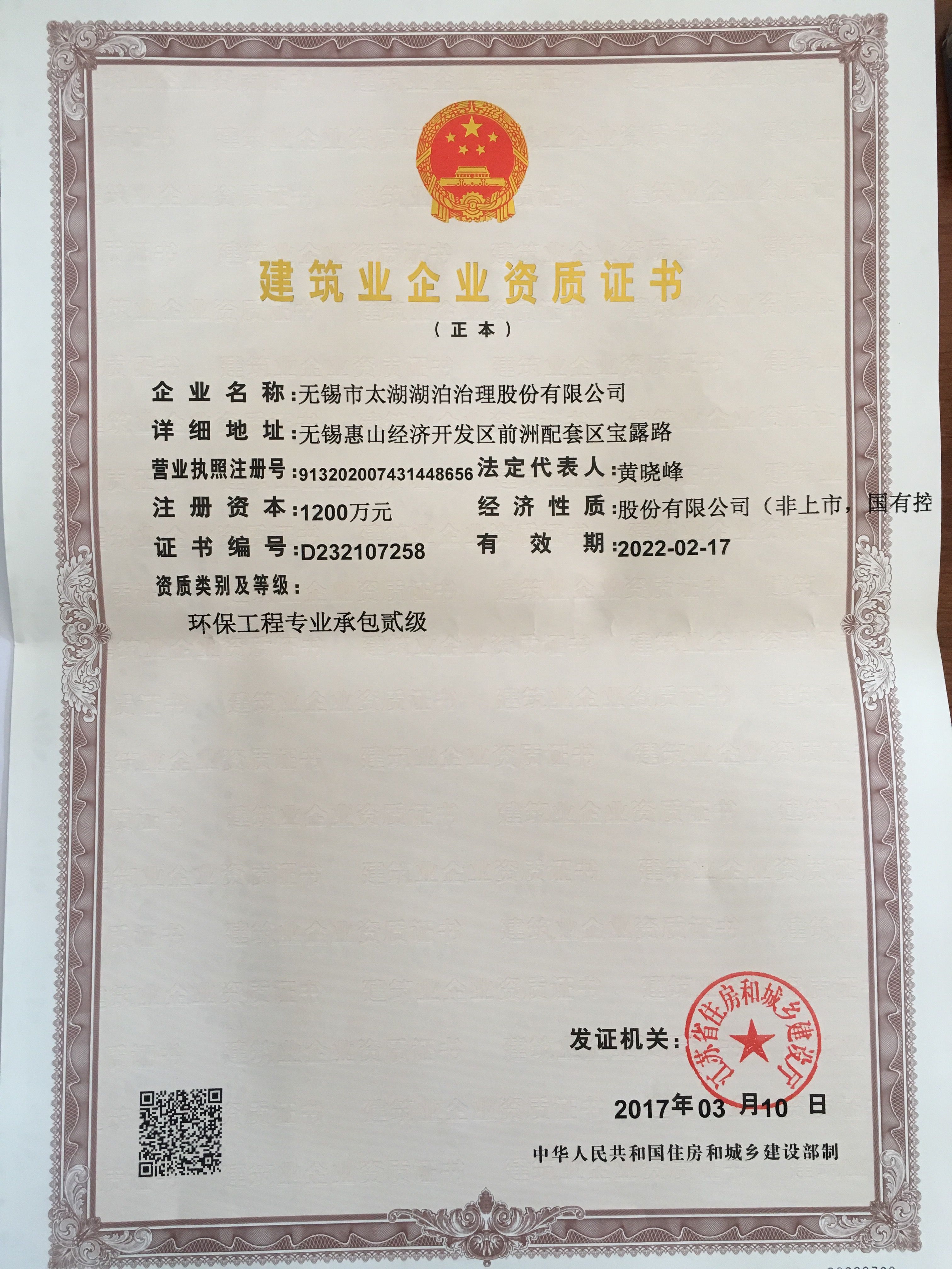 星空体育在线(中国)唯一官方网站荣升环保工程专业承包贰级资质
