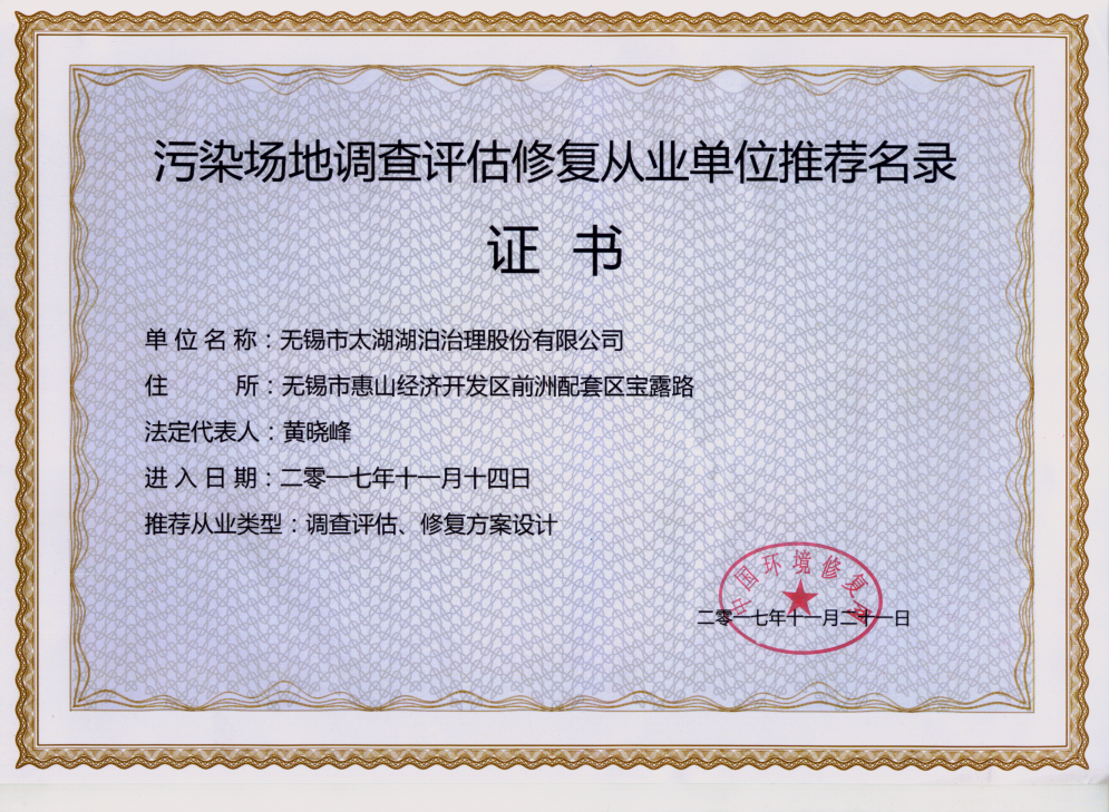 获取《污染场地调查评估修复从业单位推荐名录》证书